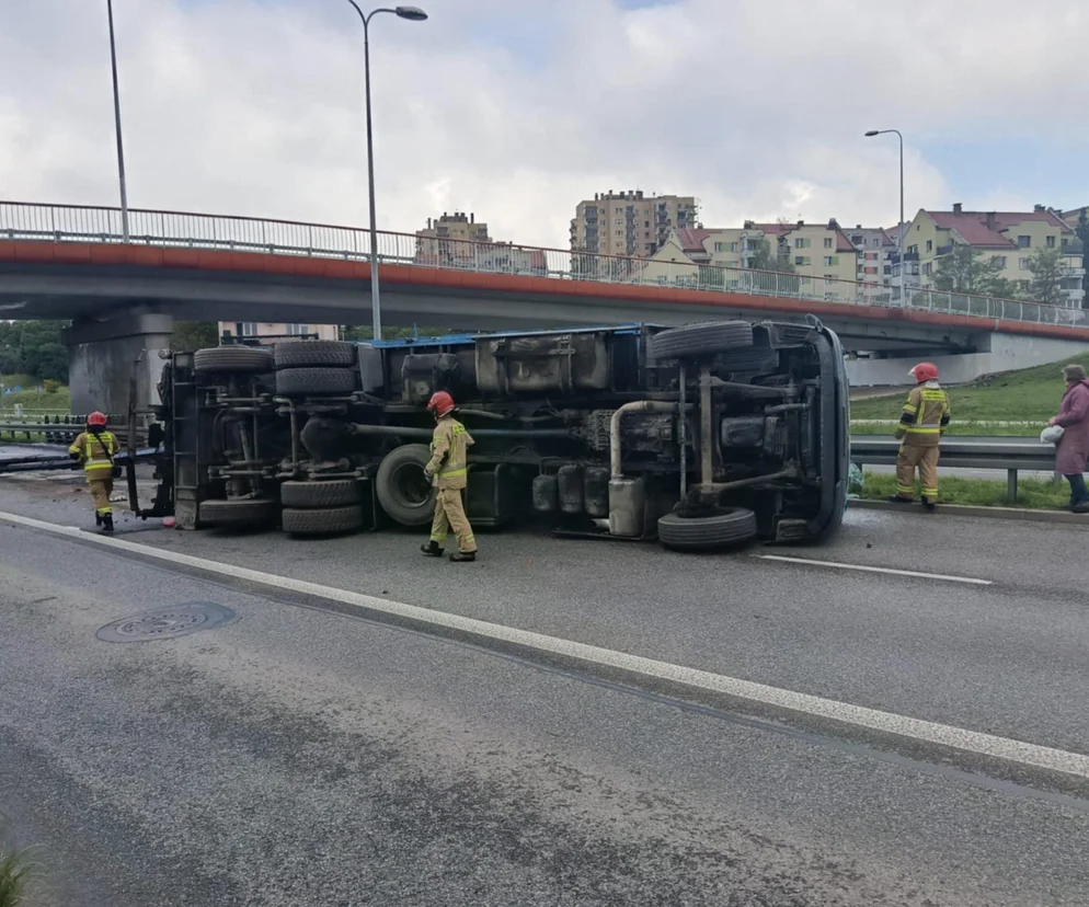 - Jak wynika ze wstępnych ustaleń policji, 62-latek kierujący pojazdem ciężarowym marki Man, jadąc od Ślichowic w kierunku centrum zahaczył o wiadukt dźwigiem załadowczym. Pojazd przewrócił się na jezdnię, doszło do uszkodzenia wiaduktu oraz sygnalizacji świetlnej. Kierujący ciężarówką był trzeźwy i nie wymagała opieki medycznej. Policjanci ustalają dokładne okoliczności tego zdarzenia - relacjonował starszy aspirant Jacek Borek z zespołu prasowego Komendy Miejskiej Policji w Kielcach.