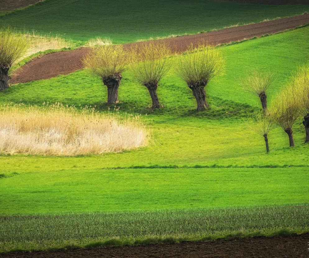 Nie bez powodu Ponidzie nazywane jest „Polską Toskanią”. Tutejsze pagórki, pocięte miedzami i pasami różnych upraw, tworzą geometryczną mozaikę, która najpiękniej wygląda właśnie w maju.